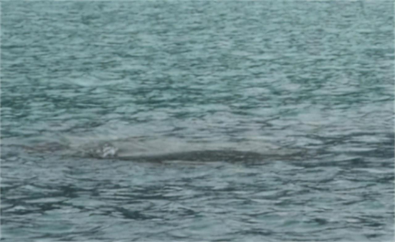 从水听器里传回的信息,可以看到,大约在距离水面6米深的地方,有一条外形与海豚及其相似的不明生物游过,此生物移动迅速,追赶着一个大型鱼群迅速离开了水听器的监测范围。